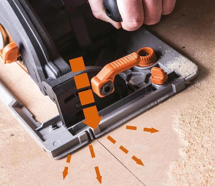 - Taiere precisa datorita adancimii de taiere reglabile de 64 mm: perfect pentru taieturi in sant.