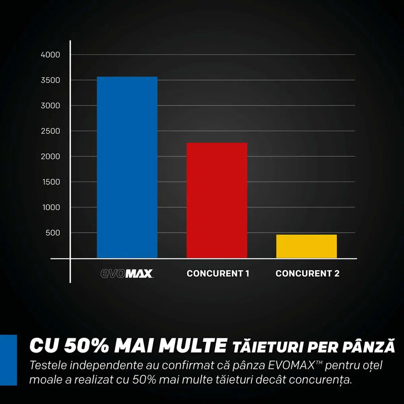 Potrivita pentru o gama larga de aplicatii de taiere a otelului moale, facand panza EVOMAX o alegere flexibila pentru atelierele profesionale.