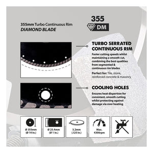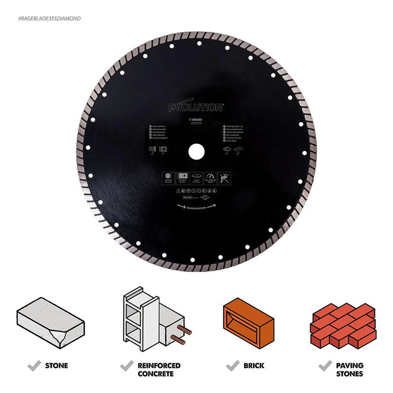 - Evolution 355mm disc diamantat segmentat turbo pentru taierea zidariei si al altor materiale. Toate ofera calitate premium pentru a creste productia si performanta!