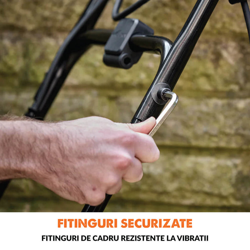 - Este echipat cu un sistem de amortizare a vibratiilor pentru un confort sporit de utilizare. Barele de rulare duble ofera rezistenta si protectie sporite in timpul transportului si faciliteaza manipularea in timpul transportului.