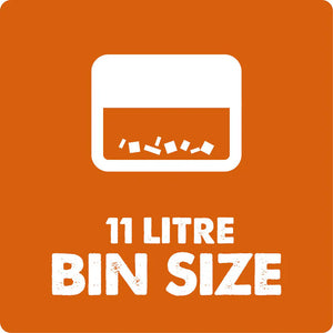 - Capacitatea containerului de gunoi este de 11 litri, din care putem folosi 8 litri cand este uscat si 5 litri cand umed