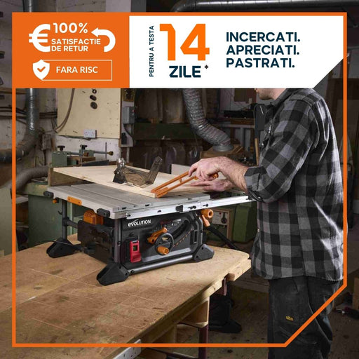 Desigilat - Fierastrau circular cu masa Evolution R255TBL+ cu disc de taiere multi-materiale de 255mm, 1800W