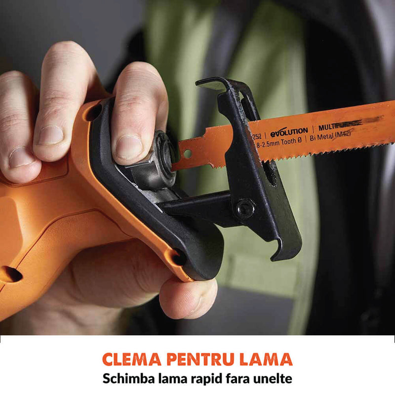 Fierastrau alternativ sabie Evolution R150RCP-Li 18V Li-Ion EXT cu panza de taiere multi-material + acumulator si incarcator