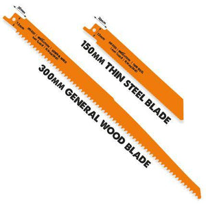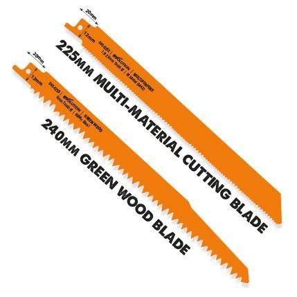 - Fierastraul vine la pachet cu 4 lame de taiere a lemnului uscat, a lemnului proaspat taiat, a otelului si o lama multifunctionala