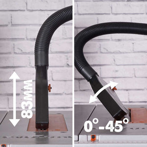 - Stanga si dreapta extensiile mesei suporta piese de lucru largi cu o suprafata de masa de 1200mm x 640mm cand sunt complet extinse.