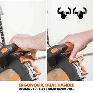 - Manerele de transport integrate permit ca fierastraul sa poata fi transportat cu usurinta dintr-un punct in altul