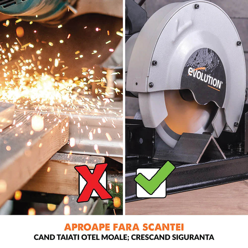 • Compatibil cu discul Evolution de 185mm cu diamant pentru taierea pietrei, betonului si caramizilor (se vinde separat).
