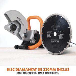 - Disc diamantat segmentat de 230mm inclus, cu concentratie mare de diamant pentru taieri eficiente si curate.