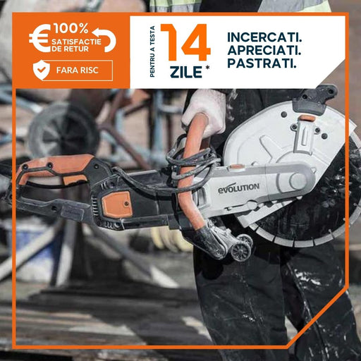 Lasati uneltele traditionale si folositi instrumentul potrivit pentru fiecare lucrare. Noua masina Evolution R230DCTX ofera o adancime de taiere de 90mm, cu pana la 50% mai mare decat un polizor si vine inclusa cu un disc diamantat! Aceasta masina de taiat beton este ideala pentru taierea materialelor de zidarie si a armaturilor. Desi are o dimensiune compacta, este puternica si va ajuta sa taiati mai usor, mai sigur si mai precis decat un polizor.