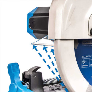 - O adancime de taiere maxima de 130 mm datorita lamei sale de carbura de 355 mm.