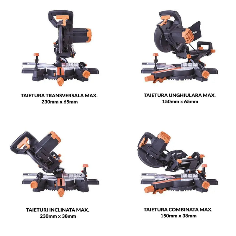 - Capacitate mare de taiere 230 mm x 65 mm cu sistem de glisare extinsa