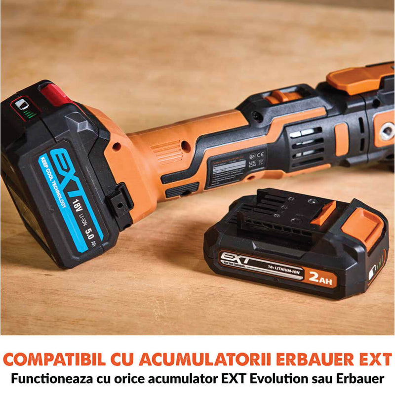 - Compatibil cu baterii EXT Li-ion de 18V pentru putere si autonomie sporite